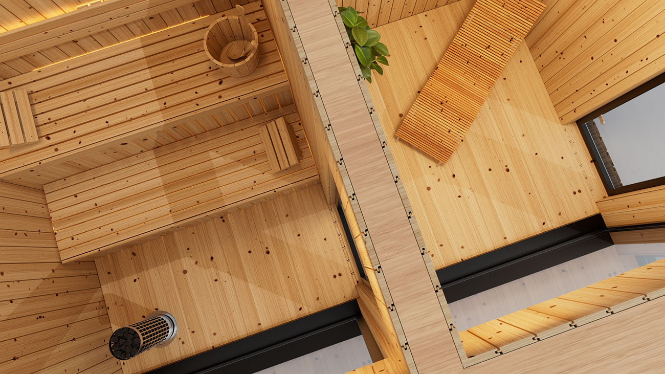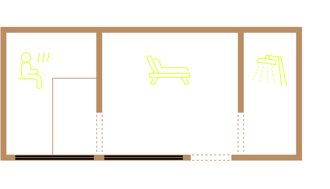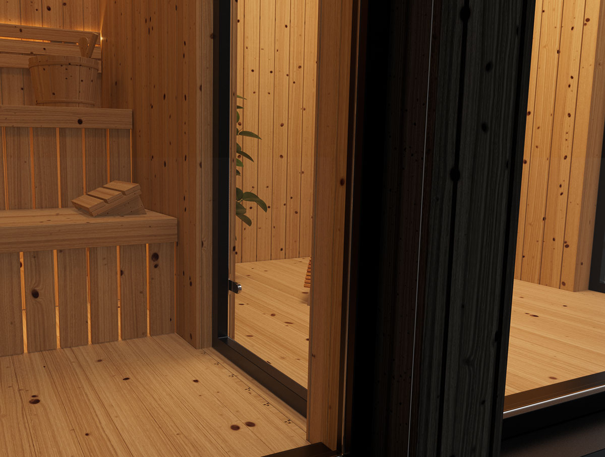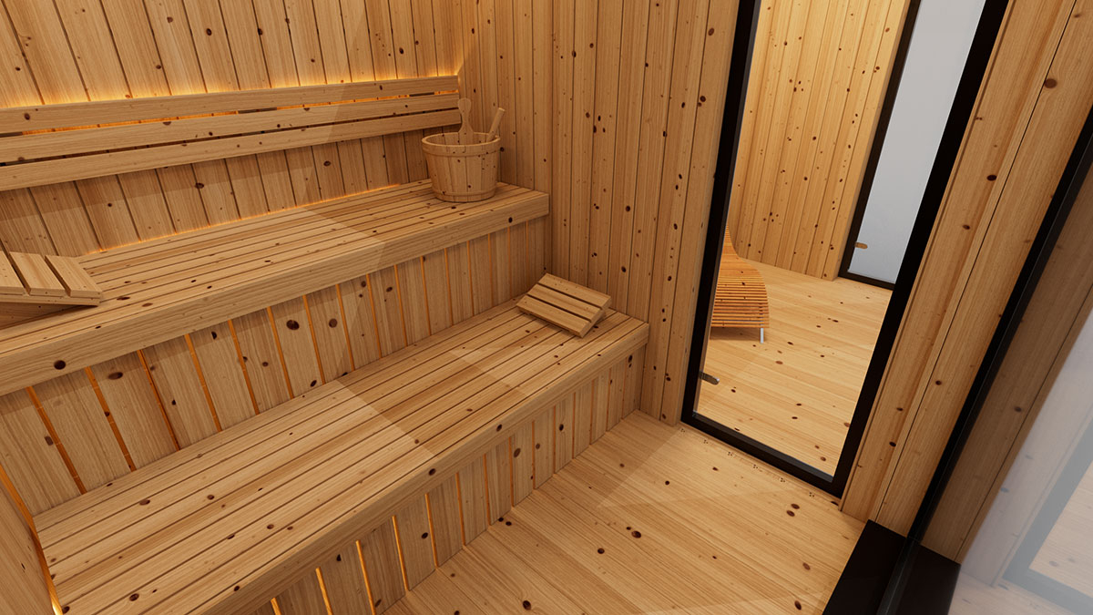 Saunování není jen o teple – je to rituál. A právě proto tato varianta nabízí kromě samotné sauny i odpočinkovou místnost, kde si můžete celý zážitek vychutnat naplno. Po intenzivním prohřátí těla přichází čas na klid, zpomalení a regeneraci. Relaxační prostor poskytuje ideální zázemí pro ochlazení, odpočinek nebo posezení s přáteli. Vše je navrženo tak, aby na sebe jednotlivé části přirozeně navazovaly a vytvářely harmonický celek.